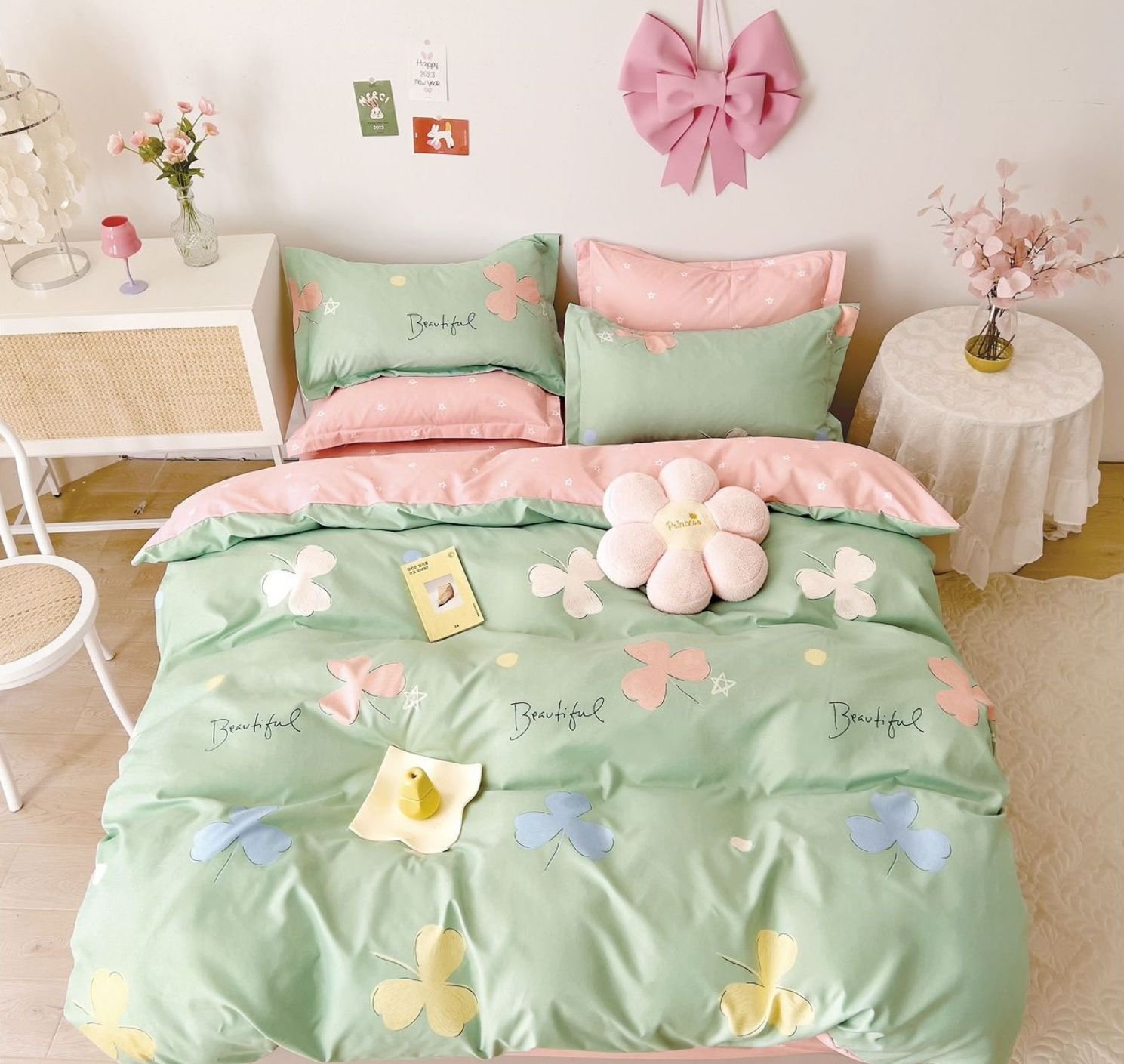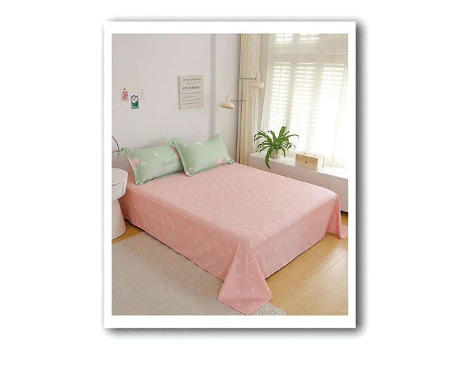Lenjerie Bumbac Finet, Cearceaf Clasic, 6 Piese, Pat Dublu, Clasic, Roz, Verde, Beautiful
