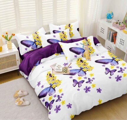 Set Lenjerie cu 4 piese confecționată din Bumbac Satinat pentru pat dublu și 2 fețe de pernă.