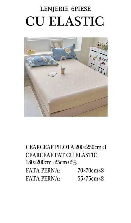 - Fețele de pernă pot avea un imprimeu diferit față din poza din prezentare, ele putând fi încadrate în orice model al lenjeriei, datorită modului în care este secționat materialul în procesul de fabricație.