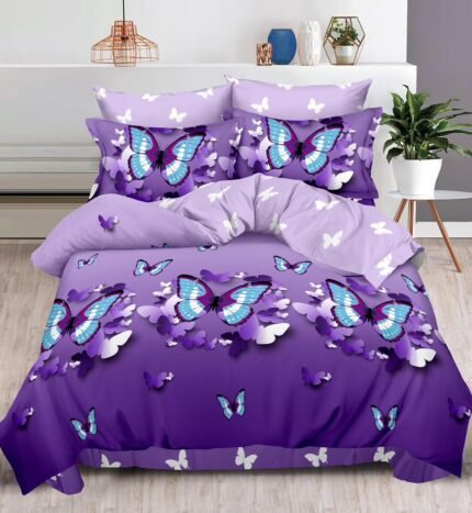Set Lenjerie cu 6 piese confecționată din Bumbac Finet pentru pat dublu și 4 fețe de pernă.