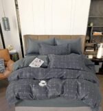 Lenjerie Bumbac Finet, Cearceaf cu Elastic, 6 Piese, Pat Dublu, Clasic, Gri, Pătrățele
