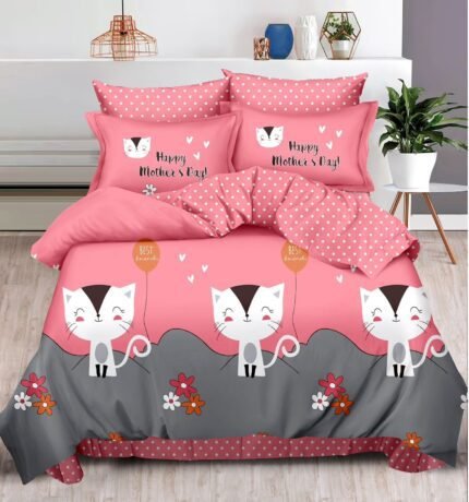 Set Lenjerie cu 6 piese confecționată din Bumbac Finet pentru pat dublu și 4 fețe de pernă.