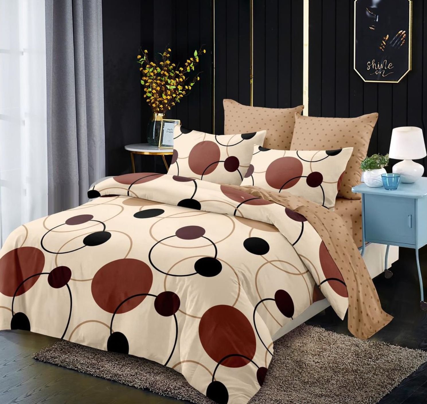 Lenjerie Bumbac Finet, Cearceaf cu Elastic, 6 Piese, Pat Dublu, Clasic, Maro, Cercuri