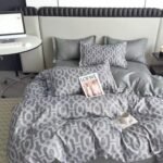 Lenjerie Bumbac Finet, Cearceaf cu Elastic, 6 Piese, Pat Dublu, Clasic, Gri, Forme Geometrice, Loewe