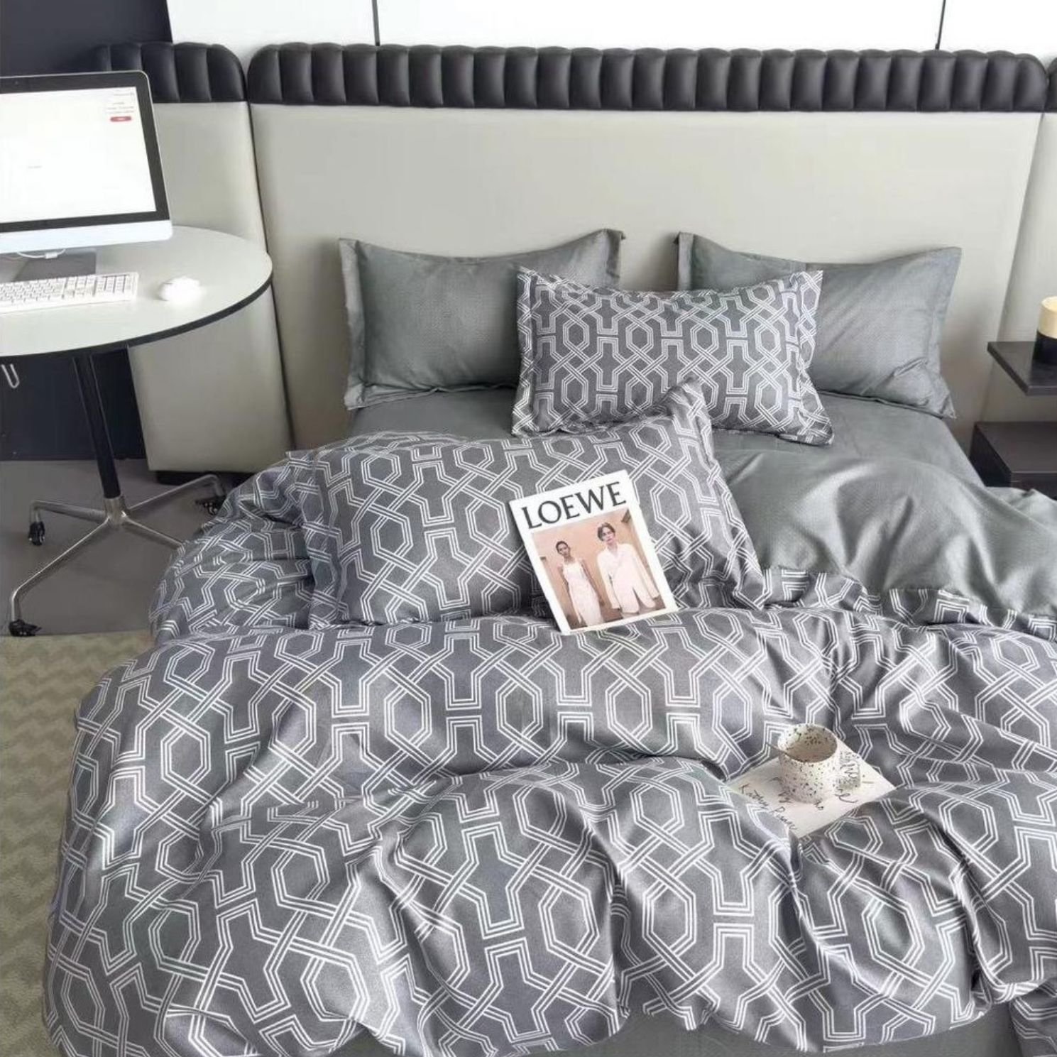 Set Lenjerie cu 6 piese confecționată din Bumbac Finet pentru pat dublu și 4 fețe de pernă.
