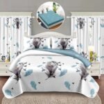 Lenjerie Bumbac Finet, Cearceaf cu Elastic, Pat 1 Persoană, 2 Draperii Incluse, Alb, Bleu, Pene