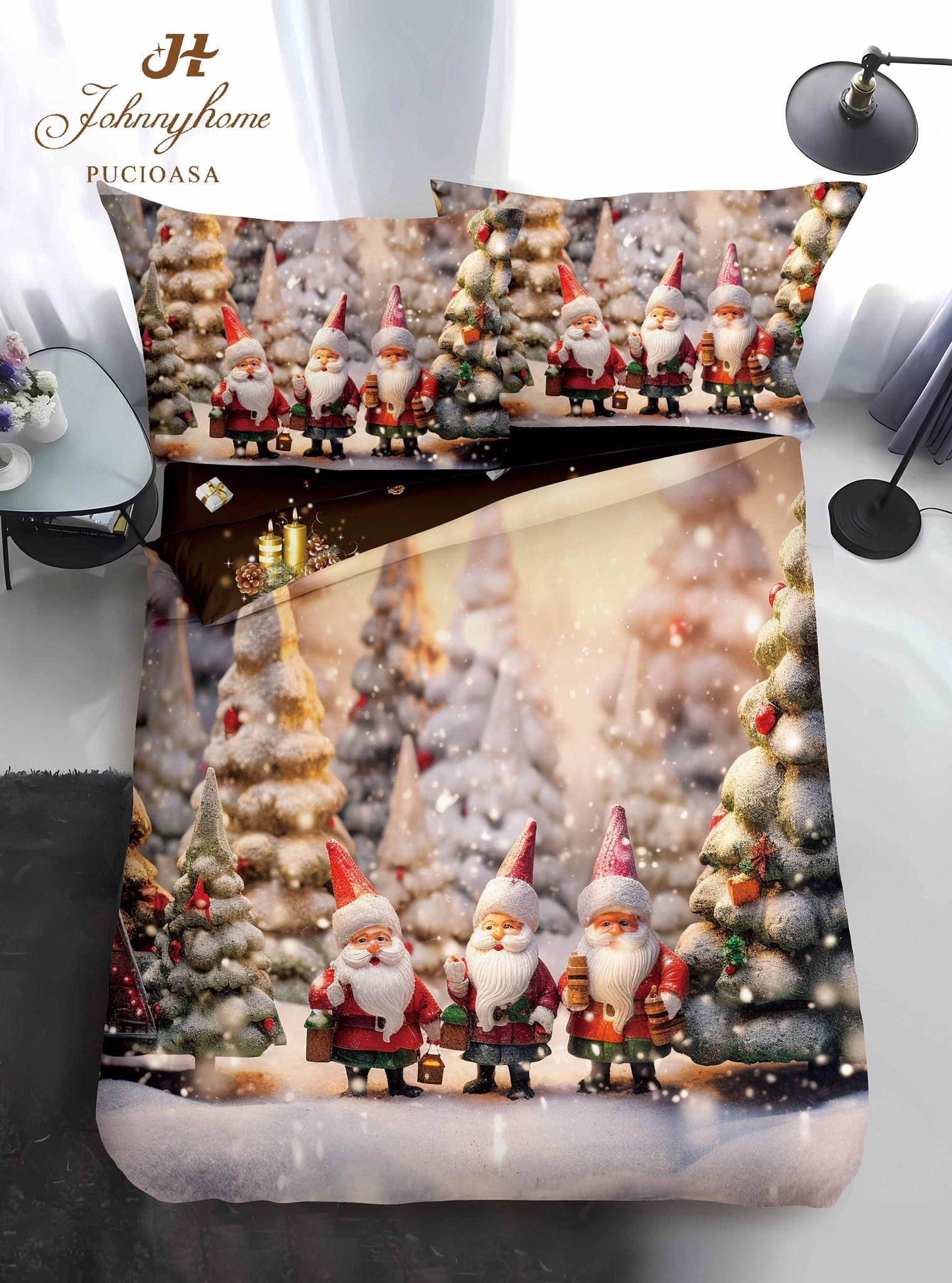 Lenjerie Bumbac Finet, Colecția de Crăciun, 4 Piese, Pat 1 Persoană, Moșii din Pădurea Fermecată