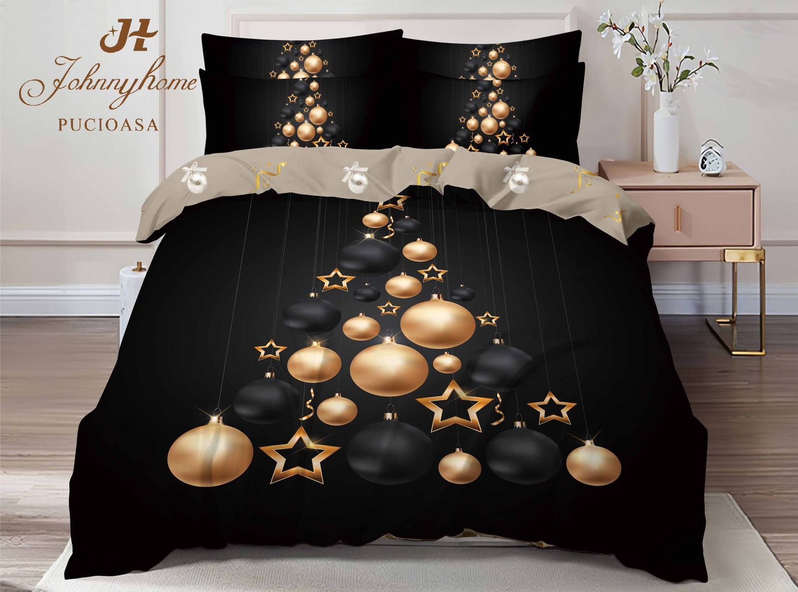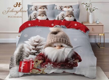 Lenjerie Bumbac Finet, Colecția de Crăciun, 6 Piese, Pat Dublu, Bradul Regal al Sărbătorilor