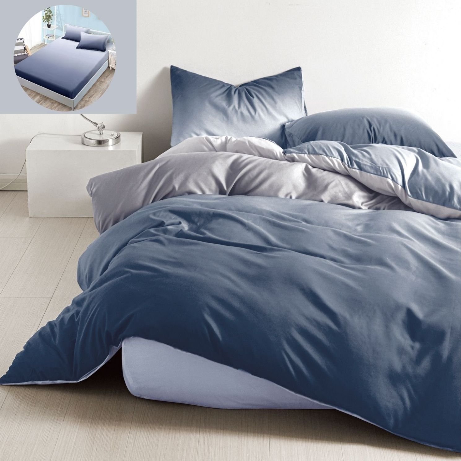 Lenjerie Bumbac Finet, cu Elastic, 4 Piese, Pat 1 Persoană, Degrade Clasic, Albastru