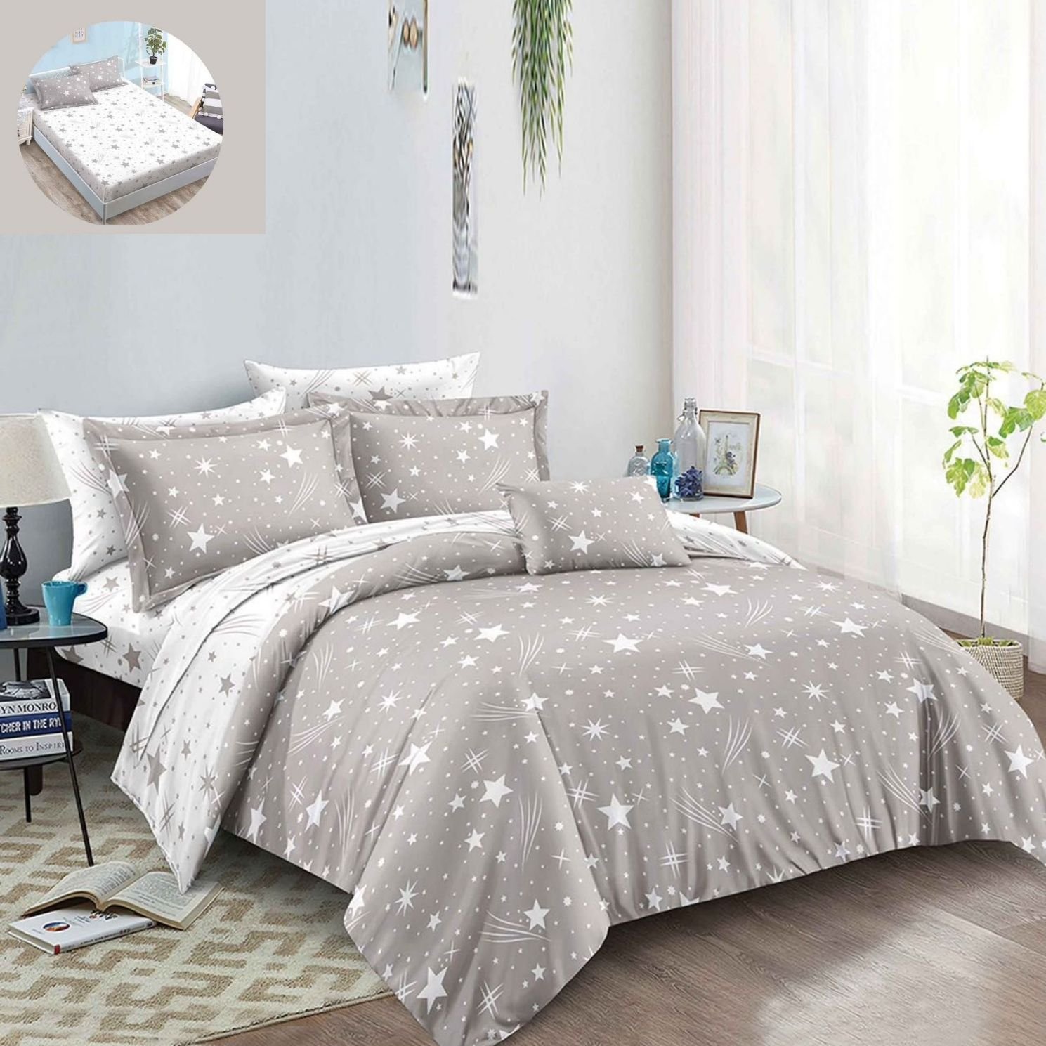 Lenjerie Bumbac Satinat, cu Elastic, 4 Piese, Pat 1 Persoană, Grey Stars