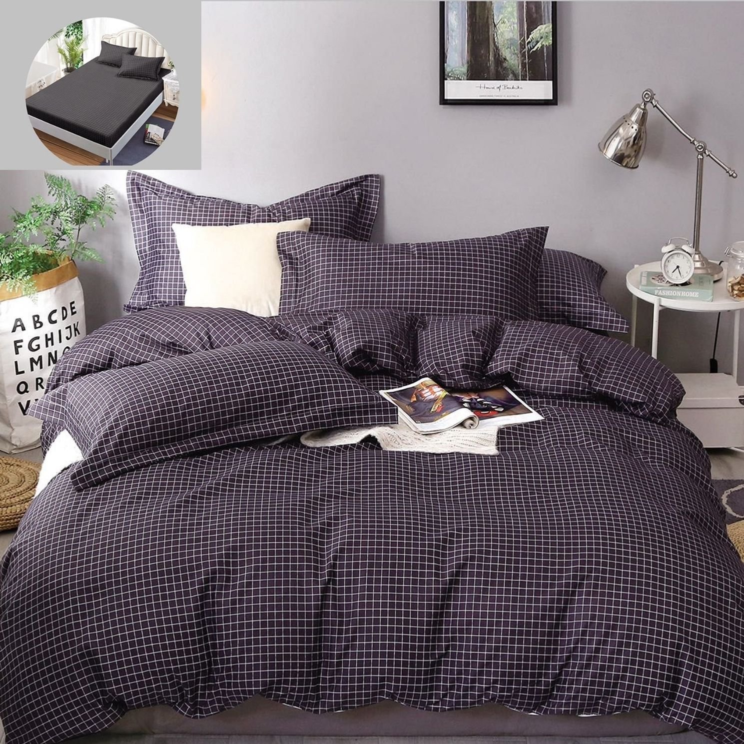 Lenjerie Bumbac Satinat, cu Elastic, 4 Piese, Pat 1 Persoană, Gri
