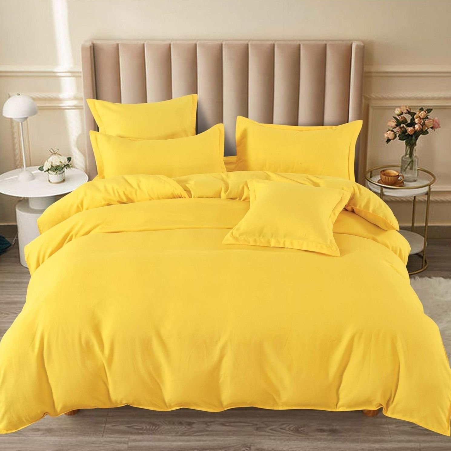 Lenjerie Bumbac Finet cu Elastic, 6 Piese, Pat Dublu, Galben