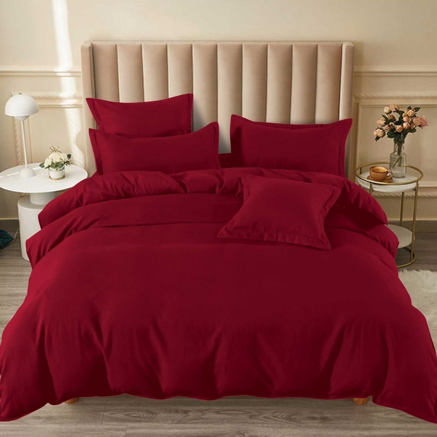 Lenjerie Bumbac Finet cu Elastic, 6 Piese, Pat Dublu, Grena