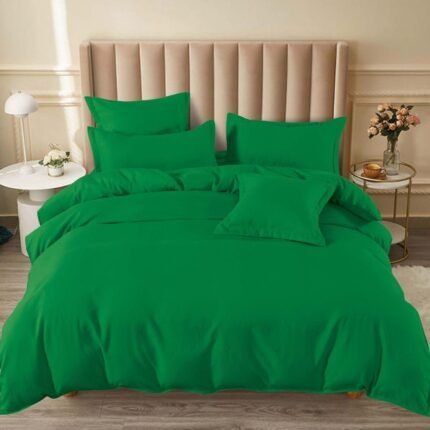 Lenjerie Bumbac Finet cu Elastic, 6 Piese, Pat Dublu, Model cu Pliuri, Verde Mentă