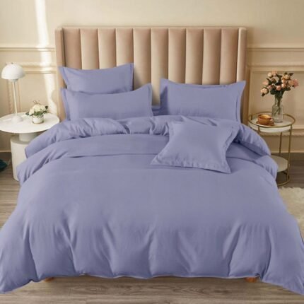 Lenjerie Bumbac Finet cu Elastic, 6 Piese, Pat Dublu, Model cu Pliuri, Lila