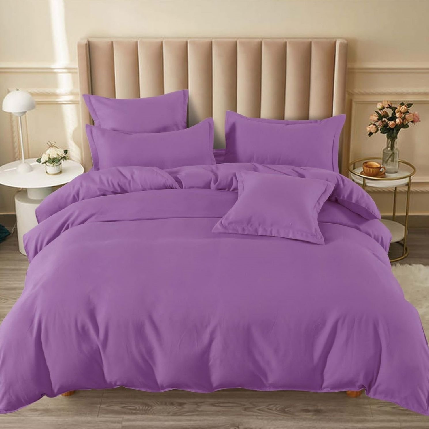 Lenjerie Bumbac Finet cu Elastic, 6 Piese, Pat Dublu, Mov