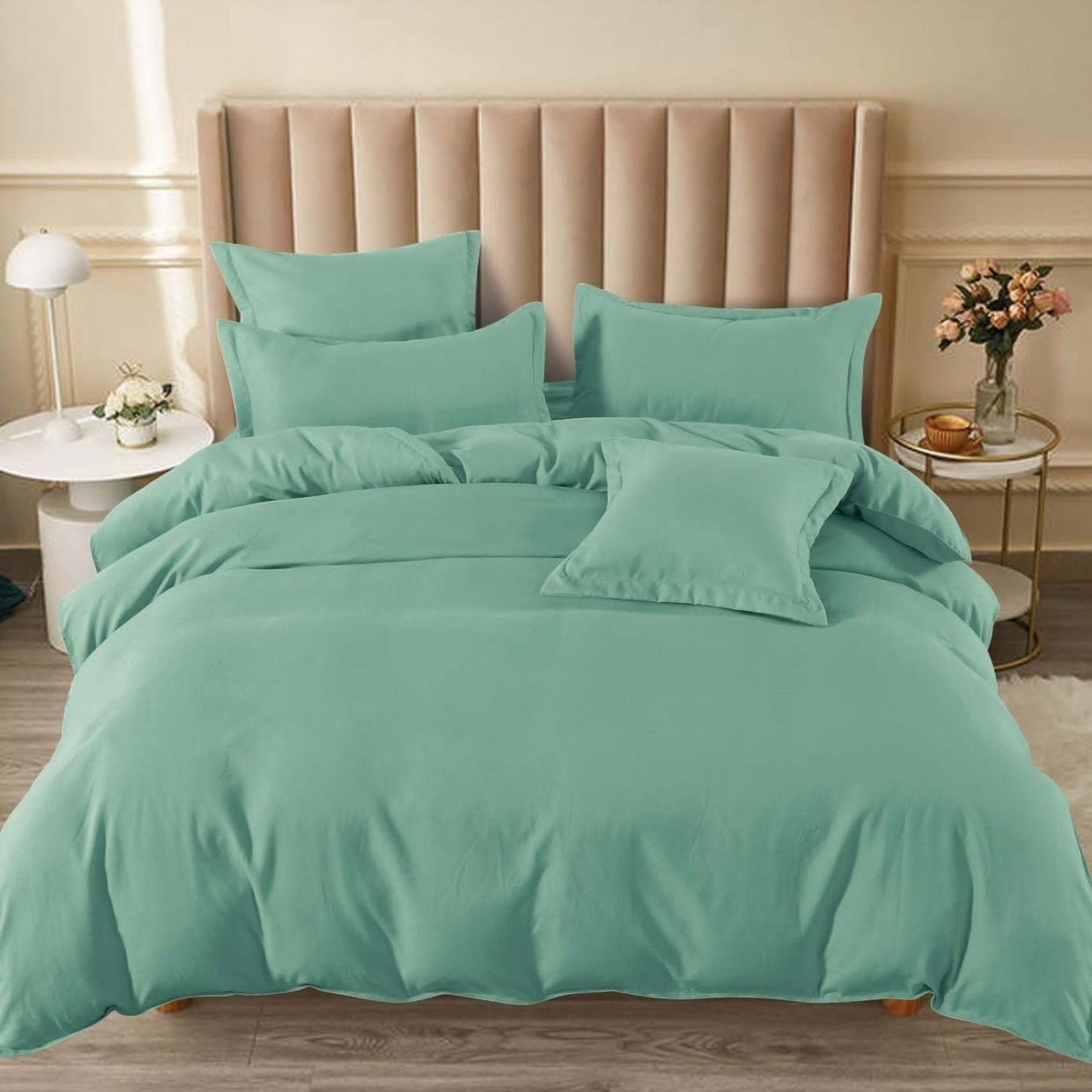Lenjerie Bumbac Finet cu Elastic, 6 Piese, Pat Dublu, Verde Mentă