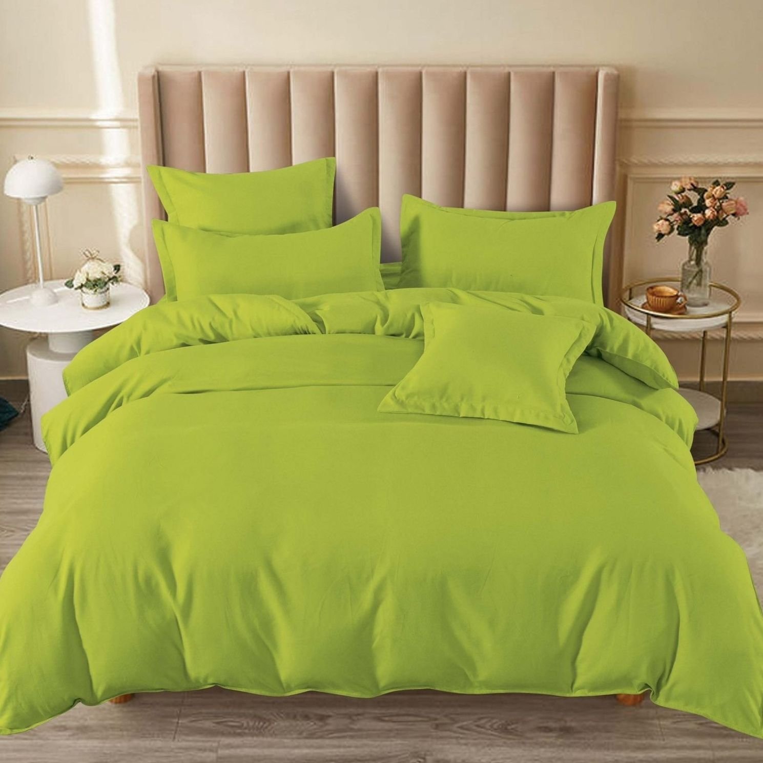 Lenjerie Bumbac Finet cu Elastic, 6 Piese, Pat Dublu, Verde Lime