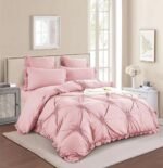 Lenjerie Bumbac Finet, cu Elastic, Model cu Inimioare Brodate, 6 Piese, Pat Dublu, Roz