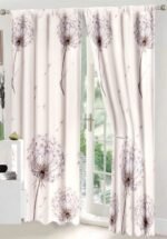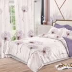 Lenjerie Bumbac Finet, Pat Dublu, 8 Piese, 2 Draperii Incluse, Bej, Lila, Păpădie