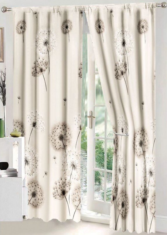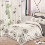 Lenjerie Bumbac Finet, Pat Dublu, 8 Piese, 2 Draperii Incluse, Bej, Maro, Păpădie