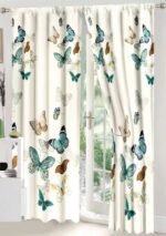 Lenjerie Bumbac Finet, Pat Dublu, 8 Piese, 2 Draperii Incluse, Crem, Fluturi