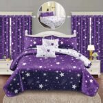 Lenjerie Bumbac Finet, Pat Dublu, 8 Piese, 2 Draperii Incluse, Mov, Steluțe Albe