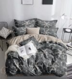 Lenjerie Bumbac Satinat, 4 Piese, cu 2 fețe, Pat Dublu, Gri
