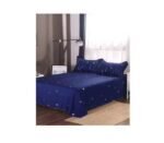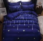 Lenjerie Bumbac Satinat, 4 Piese, cu 2 fețe, Pat Dublu, Albastru, Stele Căzătoare