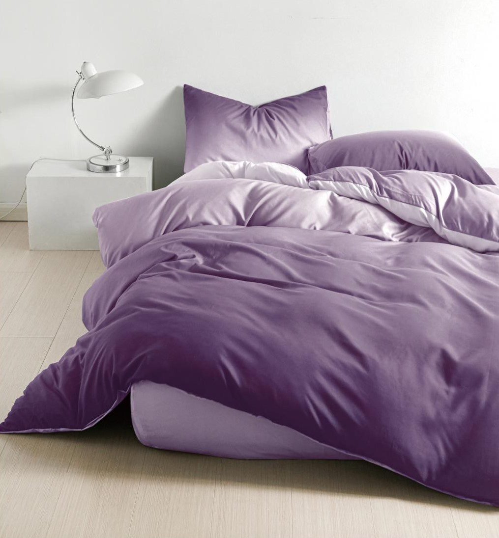 Lenjerie Bumbac Satinat, 4 Piese, cu 2 fețe, Pat Dublu, Degrade, Mov