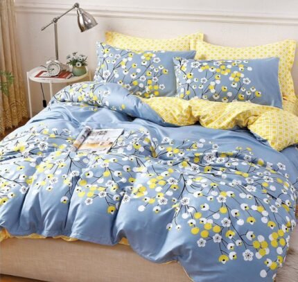Lenjerie Bumbac Satinat, Cearceaf cu Elastic, 4 Piese, cu 2 fețe, Pat Dublu, Galben, Albastru Înflorit Prețul inițial a fost: 109,00 lei.Prețul curent este: 85,00 lei.