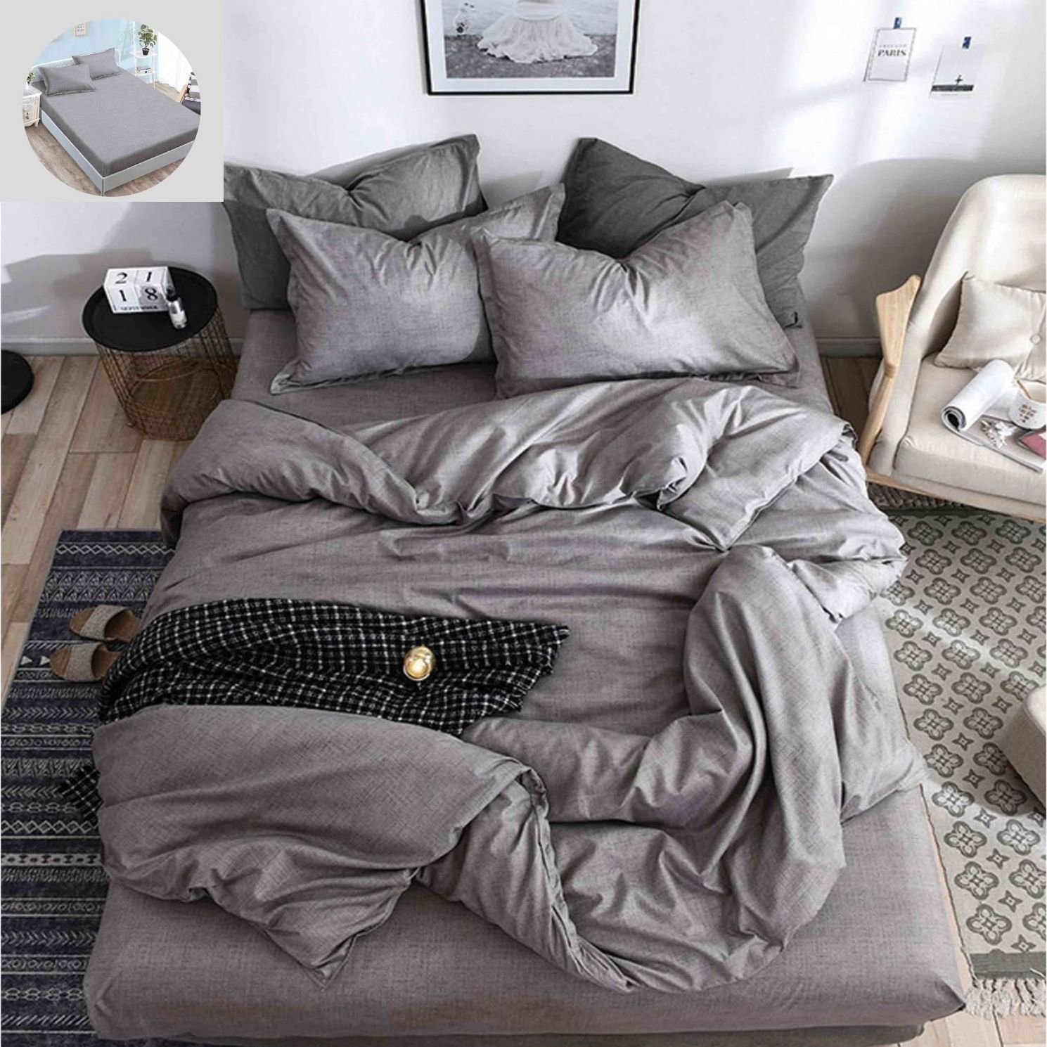 Lenjerie Bumbac Satinat, cu Elastic, 4 Piese, Pat 1 Persoană, Gri Pătrățele