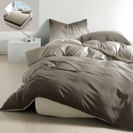 Set Lenjerie cu 4 piese confecționată din Bumbac Satinat pentru pat dublu și 2 fețe de pernă.