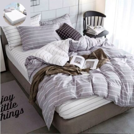 Set Lenjerie cu 4 piese confecționată din Bumbac Satinat pentru pat dublu și 2 fețe de pernă.