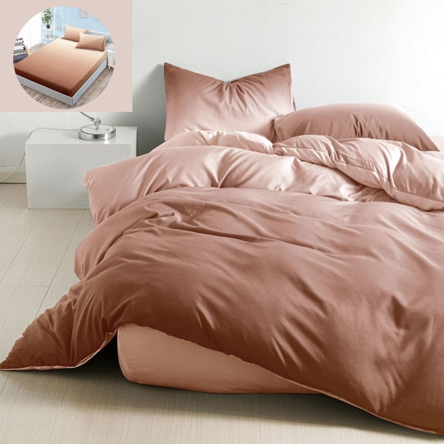 Lenjerie Bumbac Satinat, cu Elastic, 4 Piese, Pat 1 Persoană, Degrade, Roz, Maro