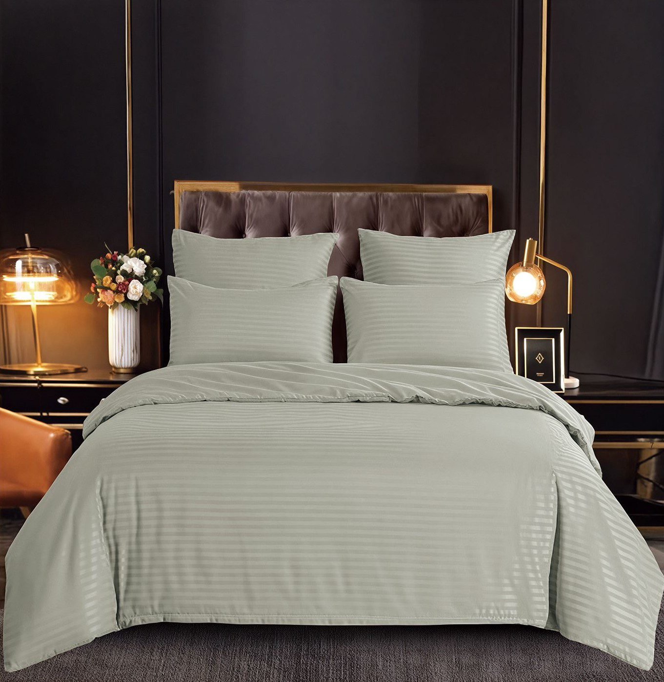 Lenjerie Damasc, Cearceaf Clasic, fără Elastic, 6 Piese, Pat Dublu, Verde Salvie Deschis