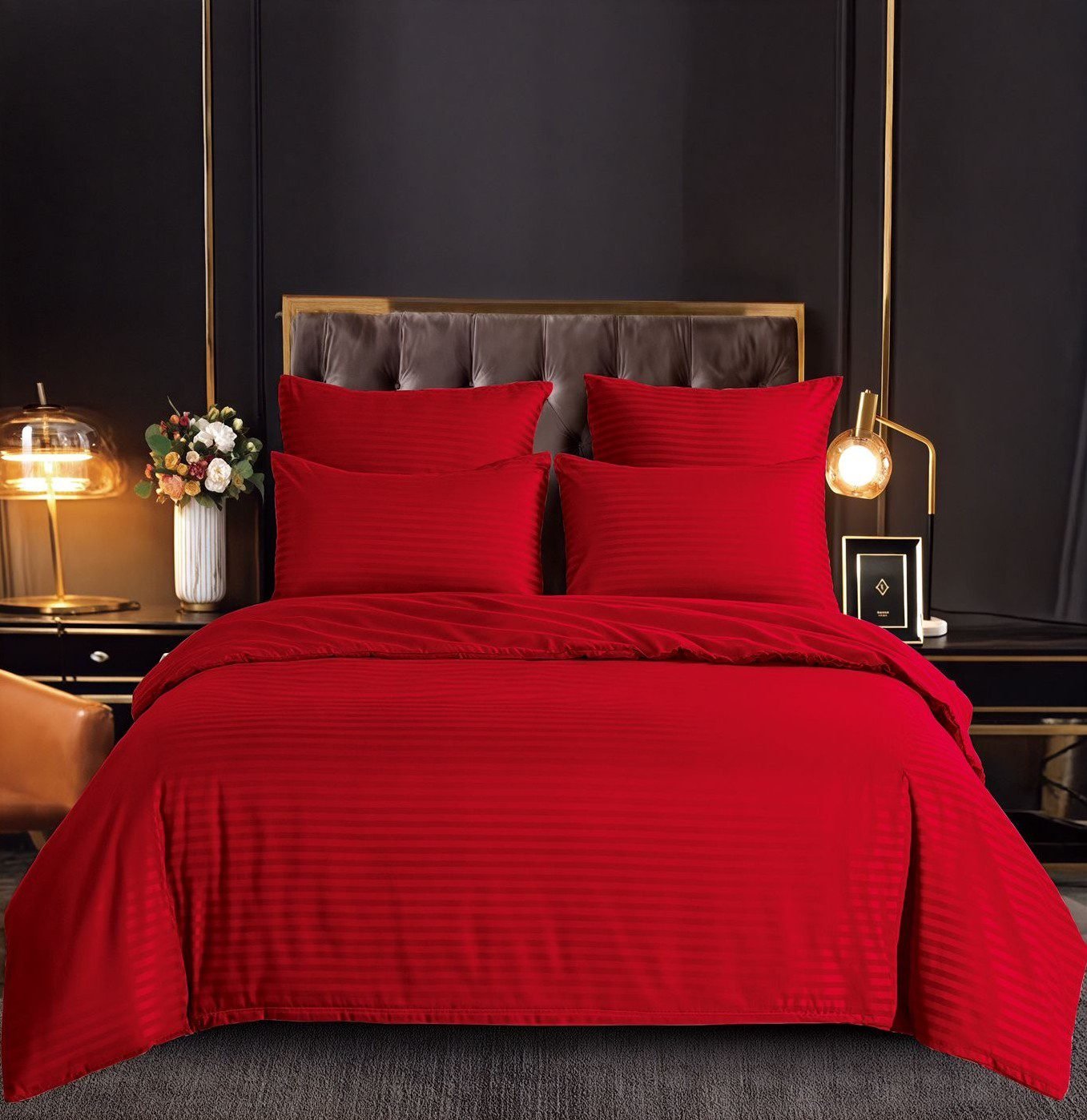 Lenjerie Damasc, Cearceaf cu elastic, 6 Piese, Pat Dublu, Roșu