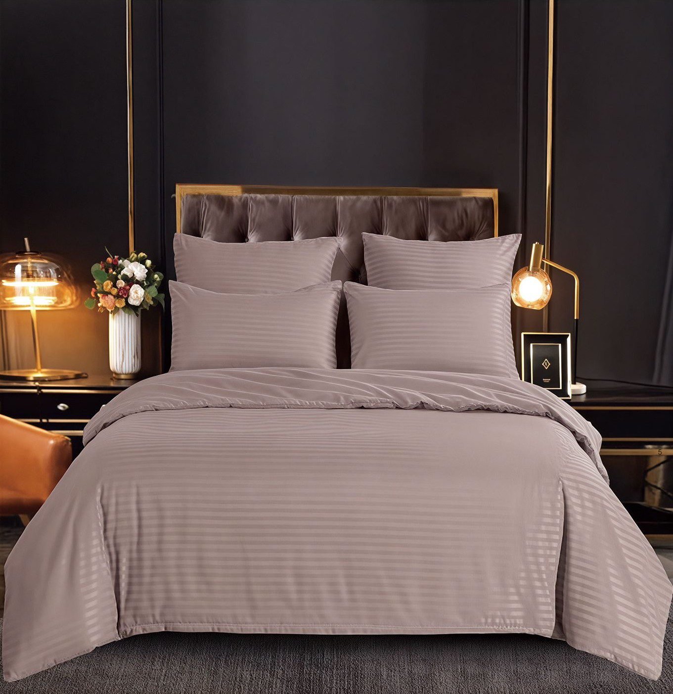 Lenjerie Damasc, Cearceaf cu elastic, 6 Piese, Pat Dublu, Taupe Cappuccino