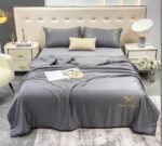 Set Lenjerie cu 4 piese confecționată din Mătase pentru pat dublu și 2 fețe de pernă.