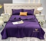Lenjerie de pat din Mătase, Pilotă Inclusă, Cearceaf Clasic, 4 Piese, Pat Dublu, Mov