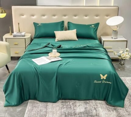 Set Lenjerie cu 4 piese confecționată din Mătase pentru pat dublu și 2 fețe de pernă.