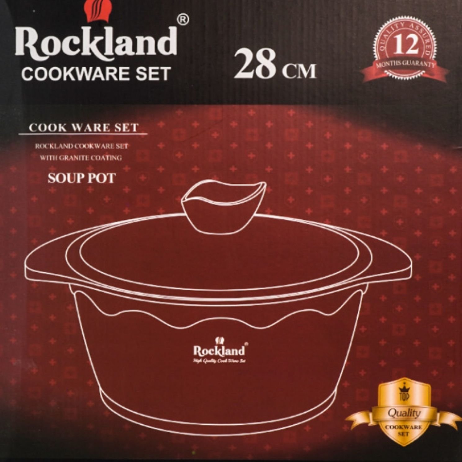 Oală din Granit, 28 cm, Capac din Sticlă, Interior din Granit, Capacitate 6.5 L, Colecția Rockland
