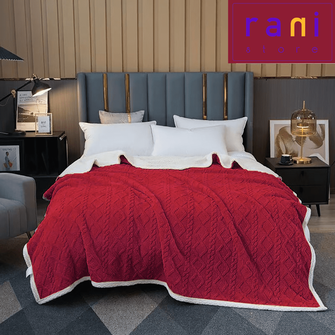Pătură Cocolino cu Blăniță, Model Tricotat, Pat Dublu, Roșu