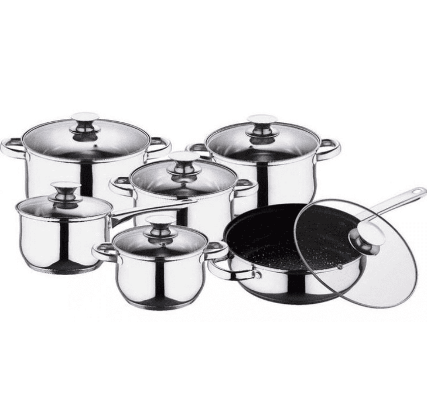 Set Oale din Inox, 12 Piese, Capac din Sticlă, Colecția Blaumann