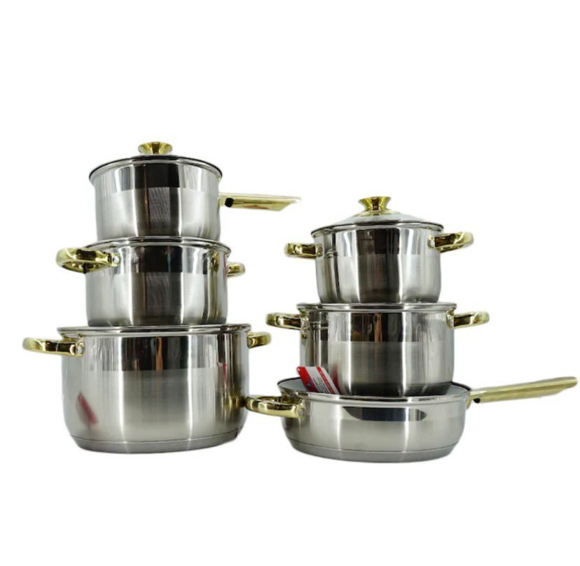 Set Oale din Inox, 12 Piese, Capac din Sticlă, Colecția Blaumann